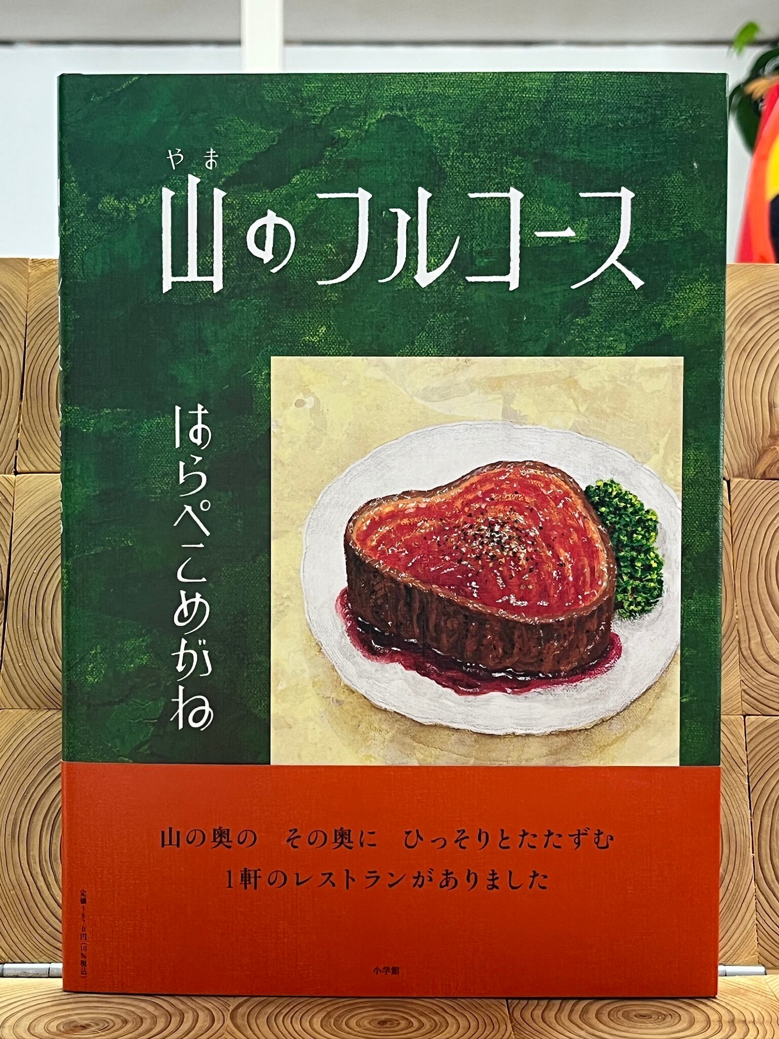 山の奥のその奥に、1軒のレストランがありました。ここは「レストラン山」。メニューは「山のフルコース」のみ。どこからかお客さんがやってきました。「いらっしゃいませ。」窓から見えるのは美しい山並み。これから、長い長いフルコースの始まりです。