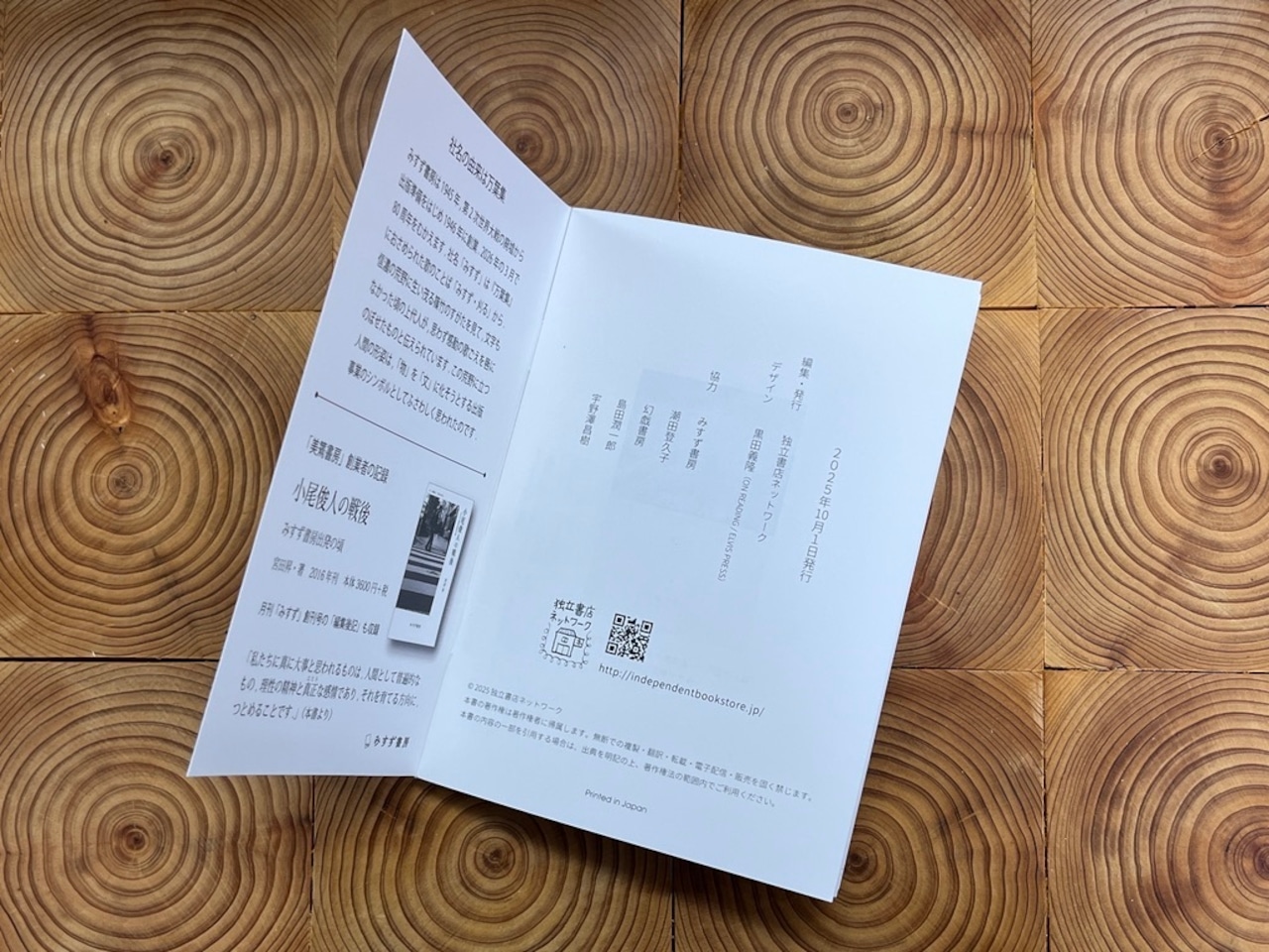 それにあわせ冊子「わたしのみすず書房」を編集・発行しました。ネットワーク約50店舗中、フェア参加17店による「わたしのみすず書房」を各一冊ずつ紹介する他、夏葉社の島田潤一郎さん、宇野澤昌樹さんによる寄稿、潮田登久子さんによる写真を掲載するなど、充実の読みものに仕上がりました。