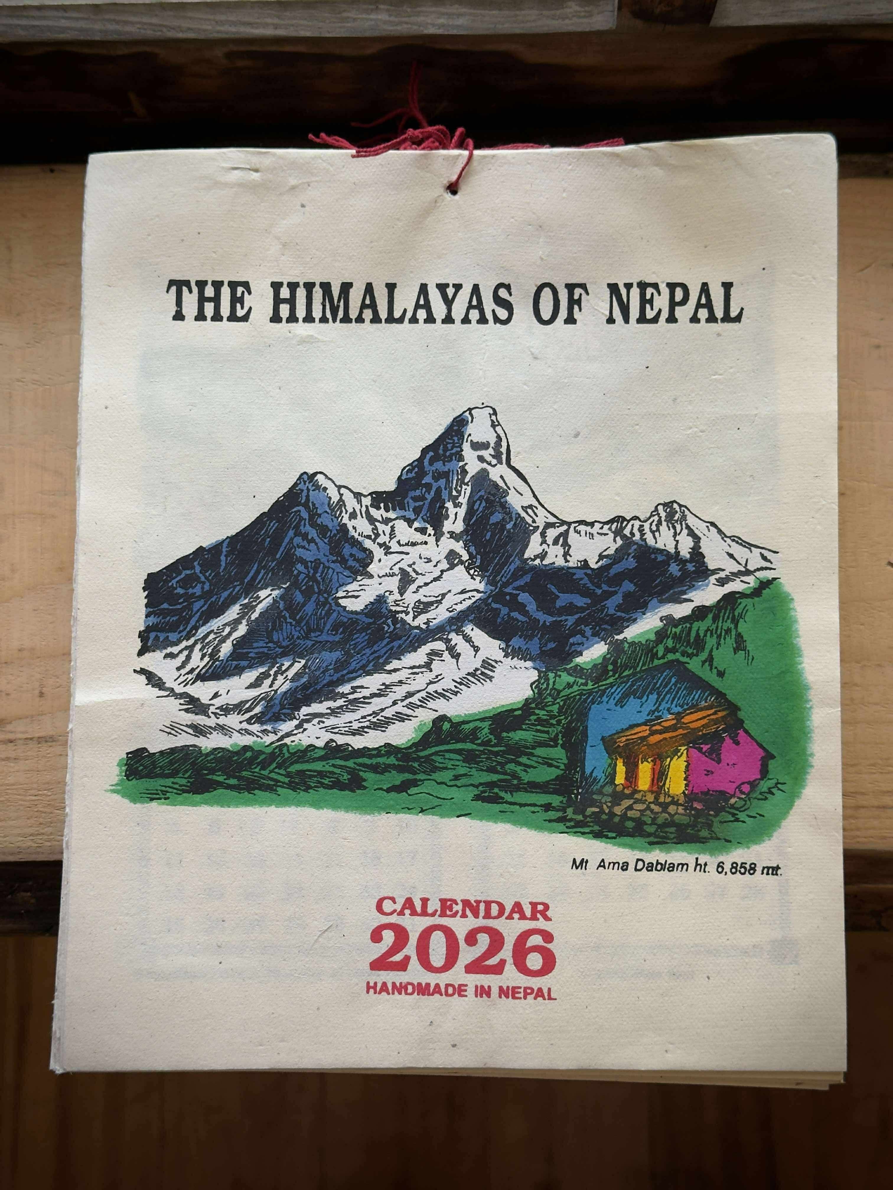 ネパールで実際に入手した、2026年版(来年版)カレンダーです。全て現地の方の手作りです。