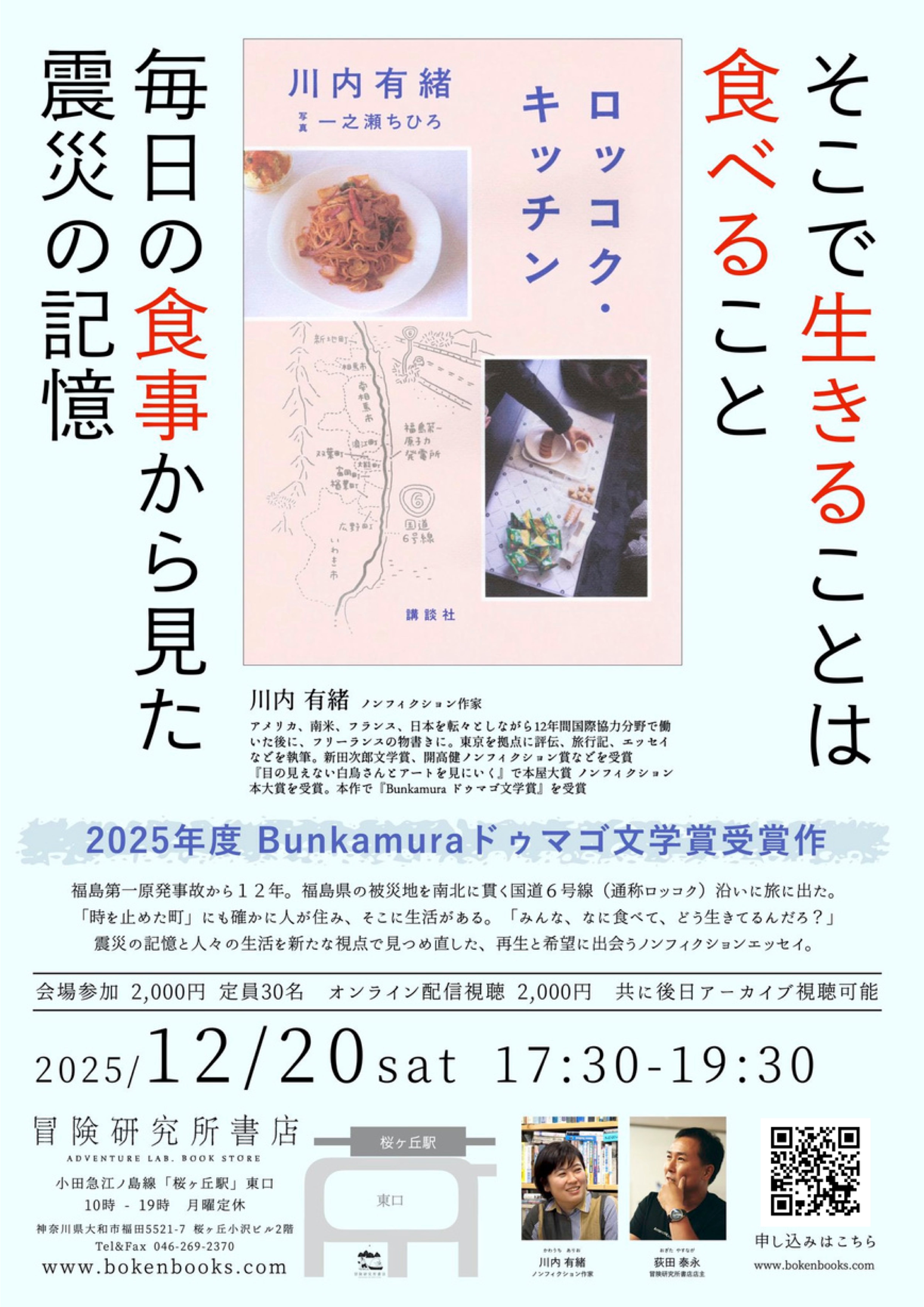 2025年12月20日開催トークイベント『川内有緒「ロッコク・キッチン」出版記念トークイベント』の会場参加、及びオンライン視聴のお申し込みページです。以下のご注意をお読みいただいた上で、お申し込みください。